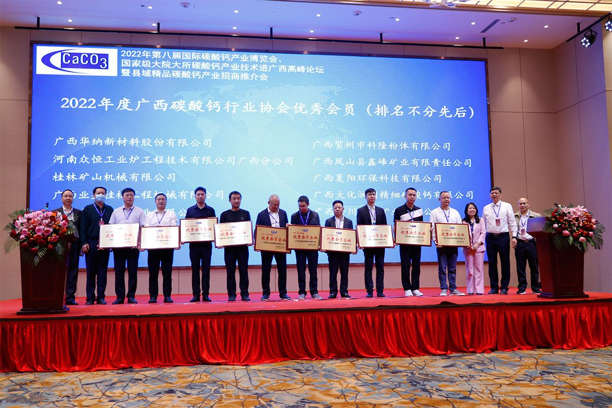 大會上(shang),爲鼓勵(li)廣西碳(tan)酸鈣行(hang)業協會(hui)會員企(qi)業繼💃🏻續(xù)推動碳(tan)酸鈣産(chǎn)業蓬勃(bo)發展,經(jing)過會員(yuán)推薦、專(zhuan)家論證(zheng)和對外(wài)公示,桂(guì)林礦山(shān)機械有(you)限公司(si)從衆多(duo)的企事(shì)業會員(yuan)單位中(zhōng)脫穎而(er)出,連續(xu)多年榮(róng)獲“廣西(xi)碳酸鈣(gài)行業協(xie)會年度(dù)優秀會(huì)員企業(yè)”榮譽稱(cheng)号🈚。