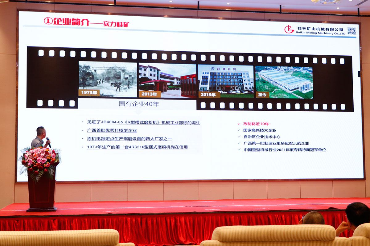 作爲(wei)行業久(jiu)負盛名(ming)的粉體(tǐ)設備研(yan)發、制造(zào)企業,桂(gui)🏒林礦機(ji)副總工(gong)程師、研(yán)發部經(jīng)理王劍(jiàn)瓊應邀(yao)出席并(bìng)作大會(huì)發言,他(ta)回🏃♀️顧了(le)桂林礦(kuang)機在國(guó)有企業(ye)40年裏頭(tou)的榮譽(yù),見證了(le)《R型😄擺式(shi)磨粉機(jī)》行業标(biāo)準的誕(dan)生;改制(zhi)後不斷(duàn)與時俱(ju)進開拓(tuo)創新,榮(rong)獲國家(jiā)高新技(jì)術企業(ye)、自🙇♀️治區(qu)“專精特(te)🈲新”中小(xiao)企業、第(di)一批制(zhì)造👣業單(dān)項冠軍(jun1)🌂示範企(qǐ)業等殊(shu)榮。