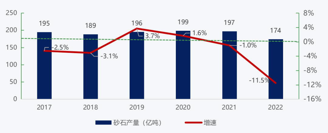 2017-2022年我國砂石産(chan)量變化情況