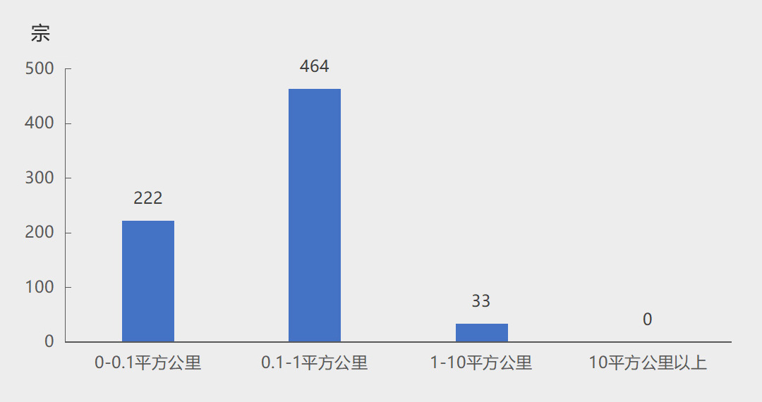 2022年新設砂(shā)石礦權規模分布(bù)