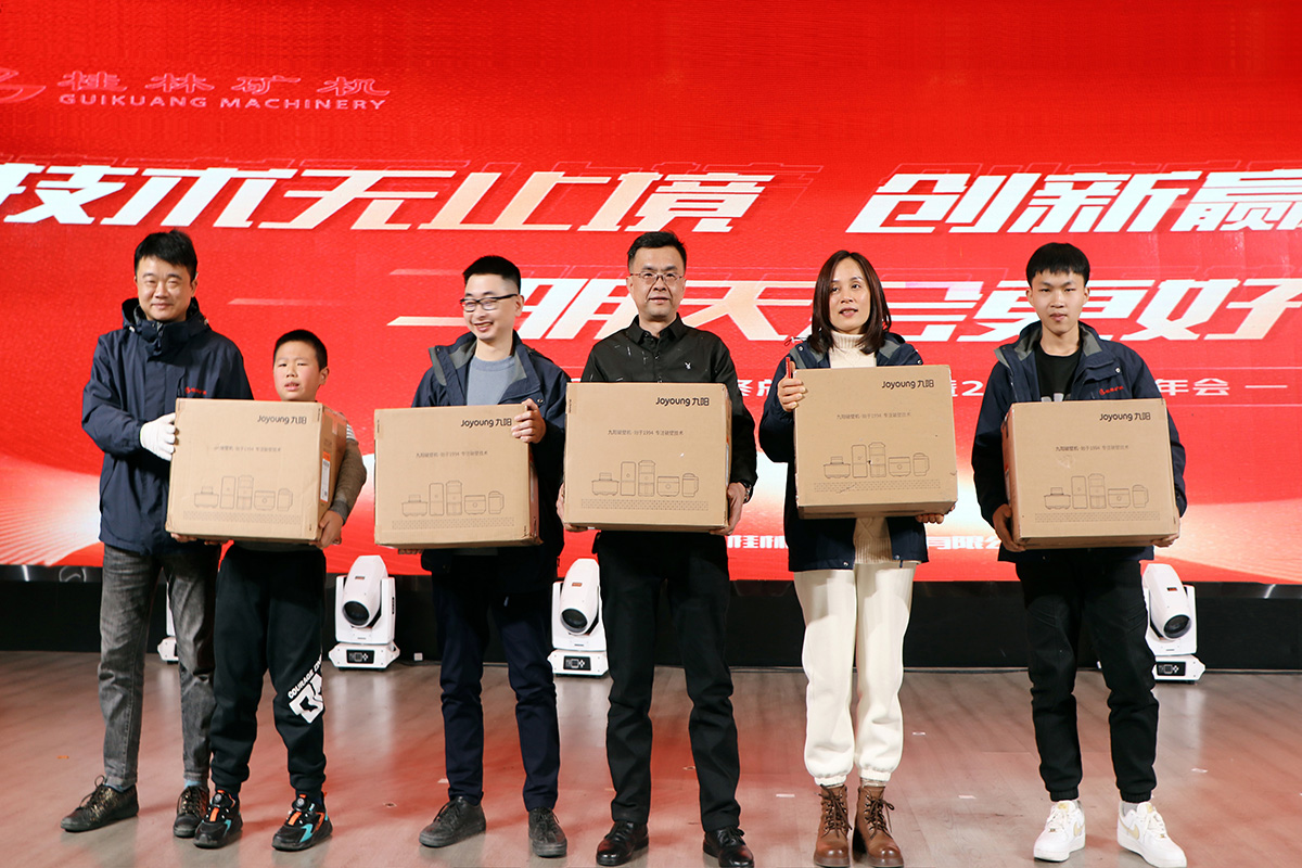 福(fú)兔辭舊歲(sui),金龍迎新(xin)年。12月17日下(xià)午,桂林礦(kuang)機2023年度總(zong)結表彰大(da)會暨2024年新(xīn)春年會在(zai)桂林隆重(zhong)召開,董事(shi)長肖壽長(zhǎng)、總經理周(zhōu)保弟、在司(si)中高層管(guan)理人員和(he)全體員工(gōng)以及特邀(yao)嘉賓歡聚(ju)一堂,共同(tong)回顧過去(qu),表彰先進(jìn)典型,展望(wàng)美好未來(lai)。