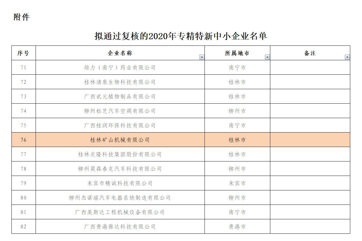 近日,自(zì)治區工信廳(ting)公布了2020年專(zhuan)精特新中小(xiǎo)企業複☀️核結(jie)果🏃🏻♂️,桂林礦機(jī)憑借卓越的(de)技術創新能(néng)力和突出的(de)市場表現,被(bei)列入複核通(tōng)過名單。